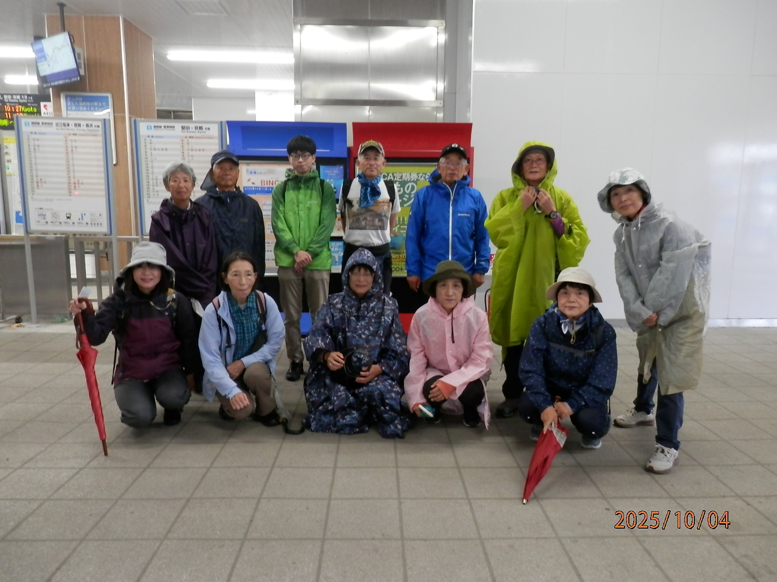 雨にもめげず13名の参加者をお迎えする。受付も今津駅のご厚意により構内の