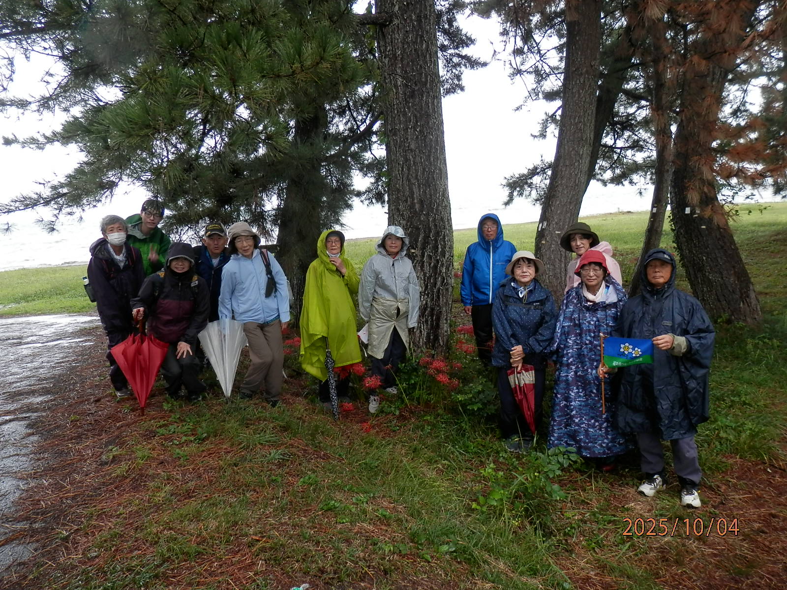 片隅を拝借出来た。開式の後10:15 スタートする。全員雨具・傘など完全装備