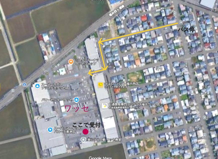 交 通:福井駅9:00発京福バス70系統運動公園線で運動公園三丁目下車(300円) し 400m歩く
